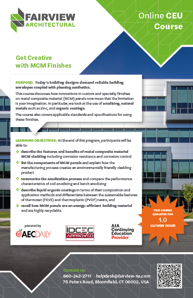Fairview Architectural North America specializes in the design, manufacture and distribution of the highest quality metal façade system solutions in the United States and Canada – www.fairview-na.com.