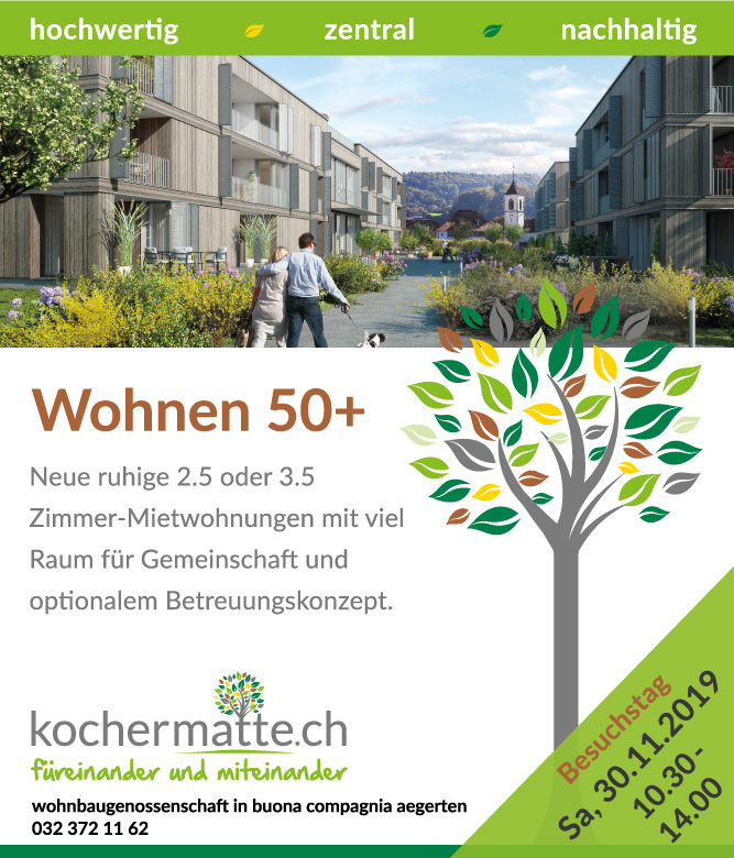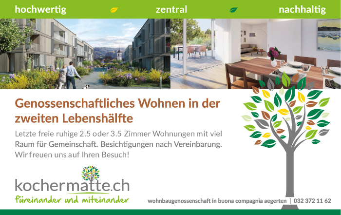 Kochermatte is a cooperative housing project in Aegerten, Switzerland, offering natural, sustainable and modern housing at inexpensive monthly rents for the over 50’s – www.kochermatte.ch.
