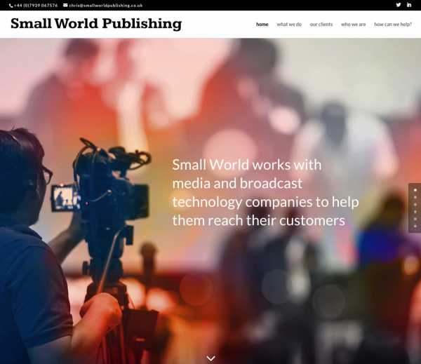 Small World works with media and broadcast technology companies to help them reach their customers. They create content that builds engagement and delivers results. – www.smallworldpublishing.co.uk.