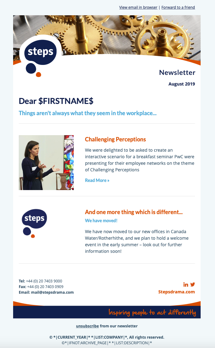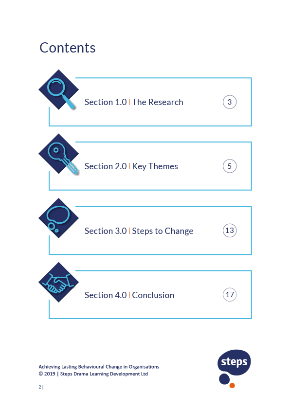 Steps work globally in collaboration with clients, using interactive drama and creative learning techniques to achieve behavioural change and inspire people to act differently – www.stepsdrama.com.